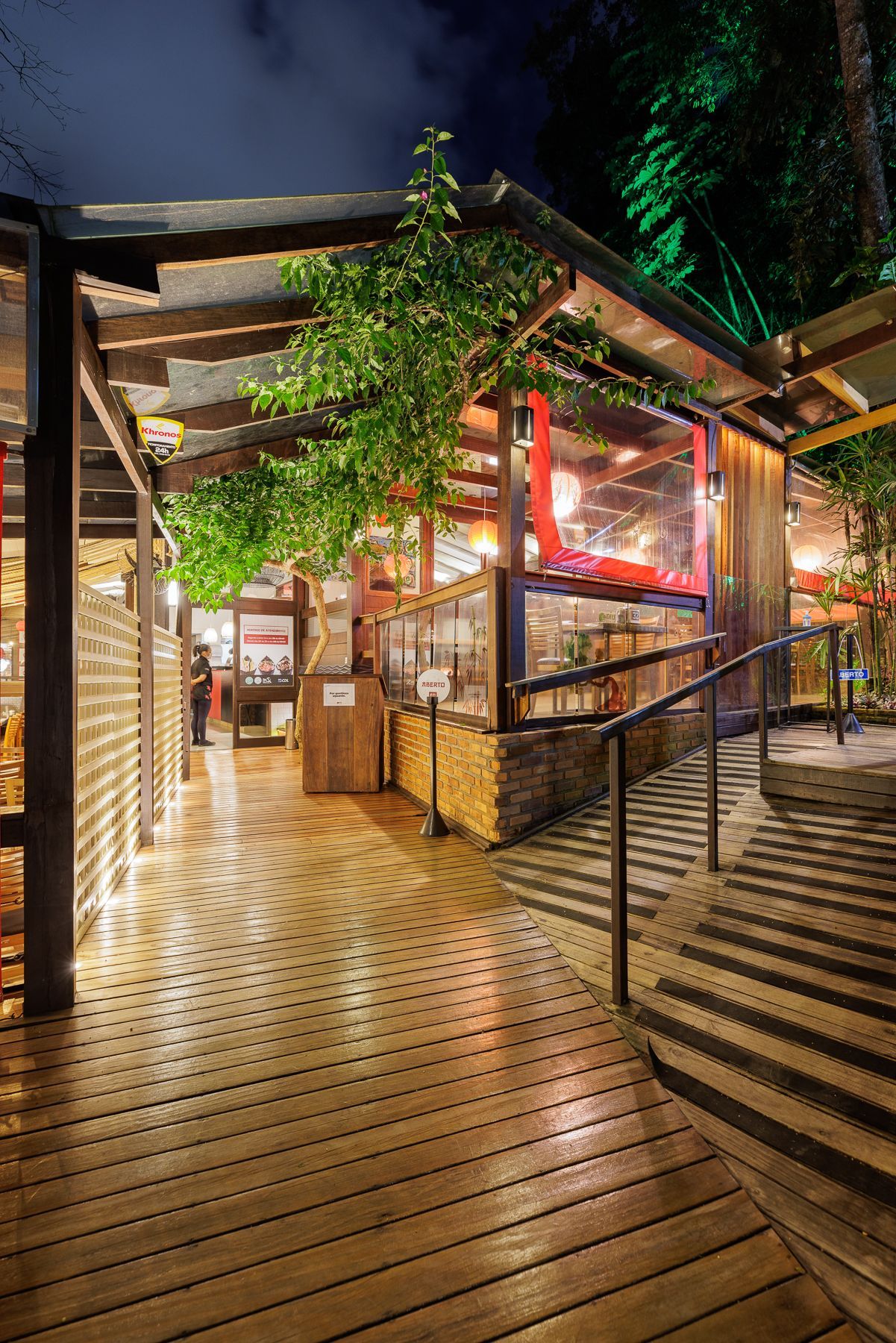O deck externo para o seu “happy hour” ou para aquelas noites especiais é uma excelente pedida. Para os casais românticos que gostam de um cantinho mais privativo ou para as famílias com crianças, oferecemos como alternativa os nossos confortáveis tatamis.