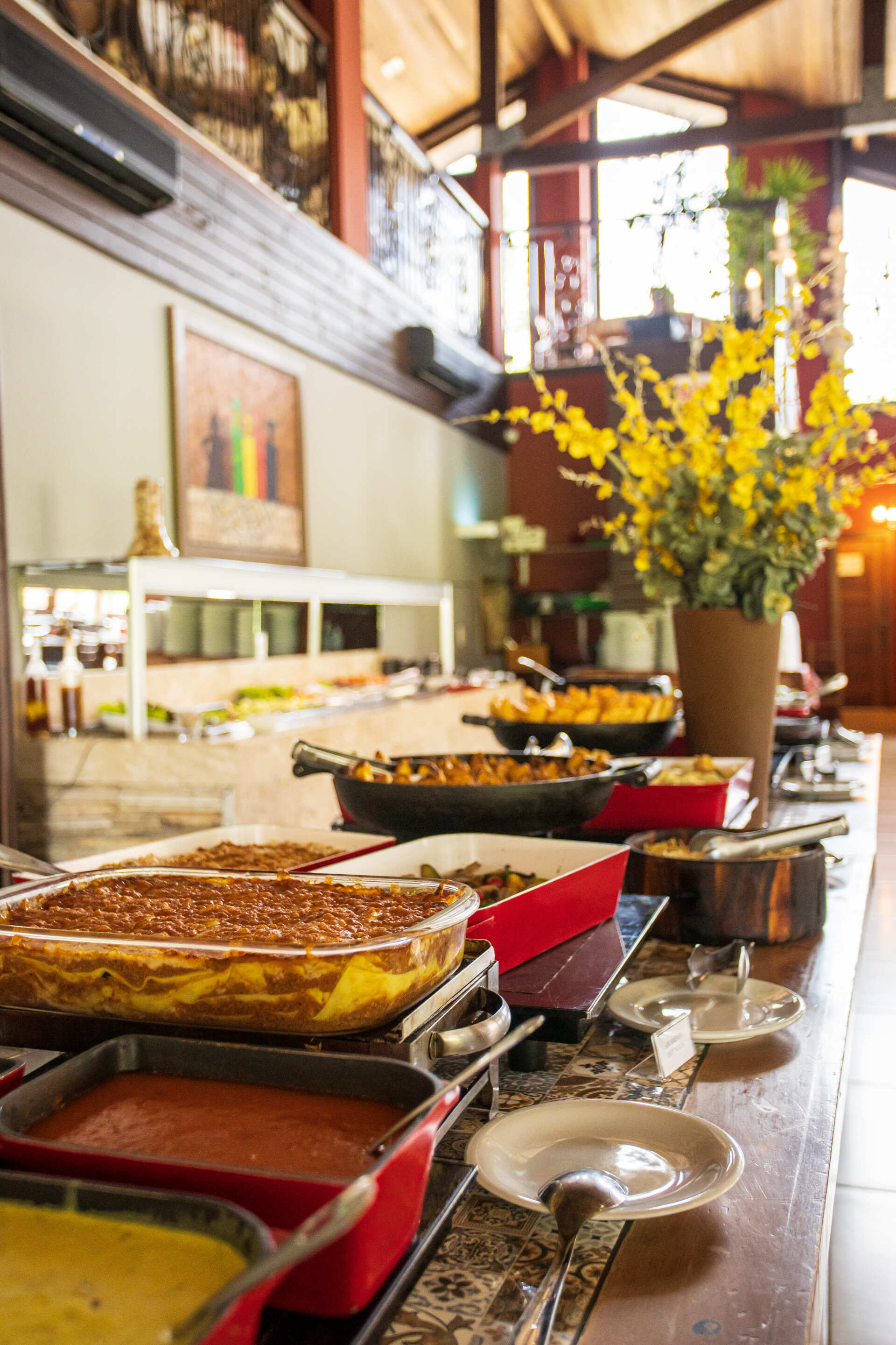 No almoço, servido de segunda a domingo, temos um buffet completo, trazendo, alguns dias da semana, pratos especiais, como na quarta-feira uma culinária tradicional com marreco recheado e aos sábados, a nossa feijoada.