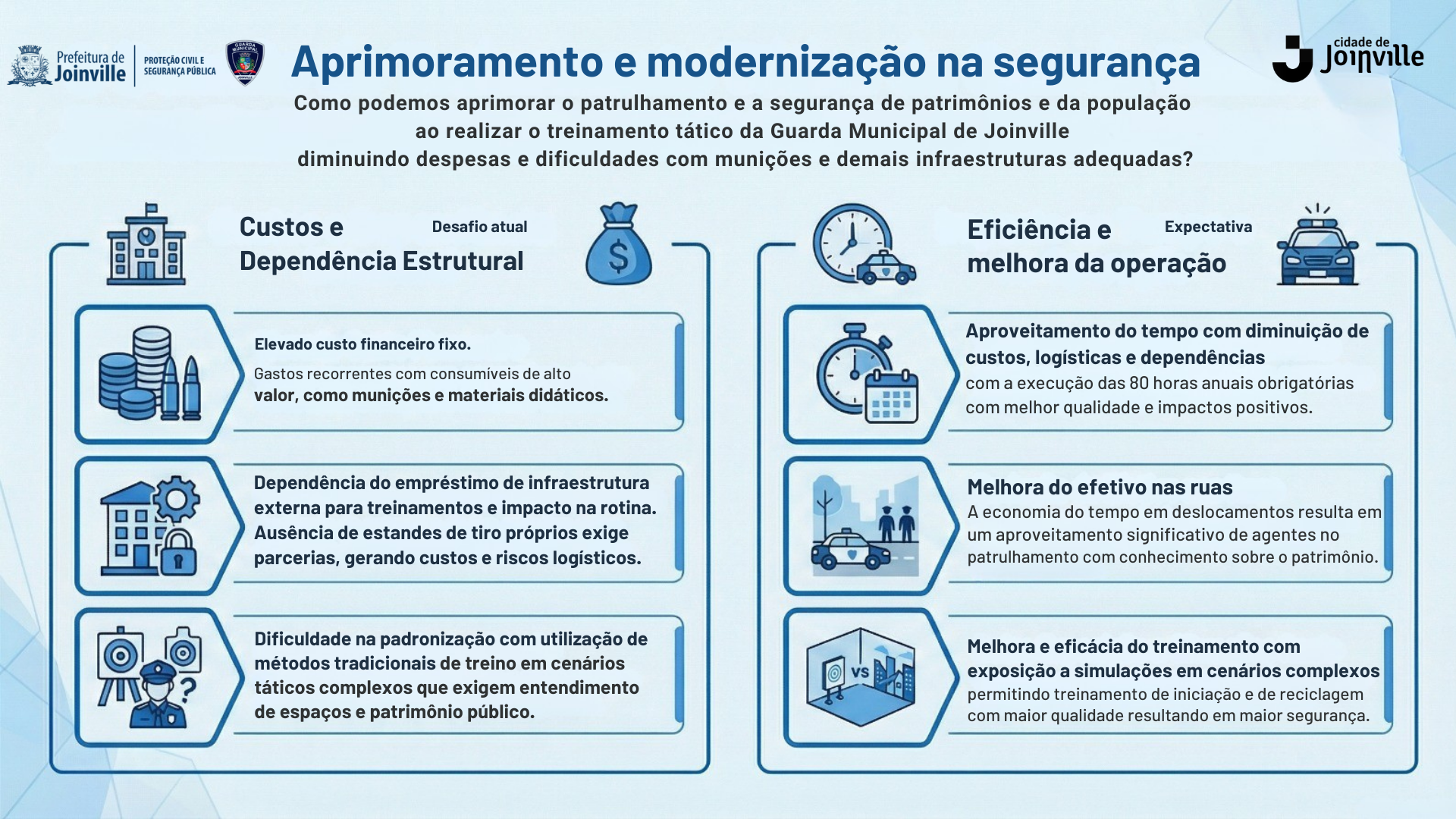 Como podemos aprimorar o patrulhamento e a segurança de patrimônios e da população ao realizar o treinamento tático da Guarda Municipal de Joinville diminuindo despesas e dificuldades com munições e demais infraestruturas adequadas?