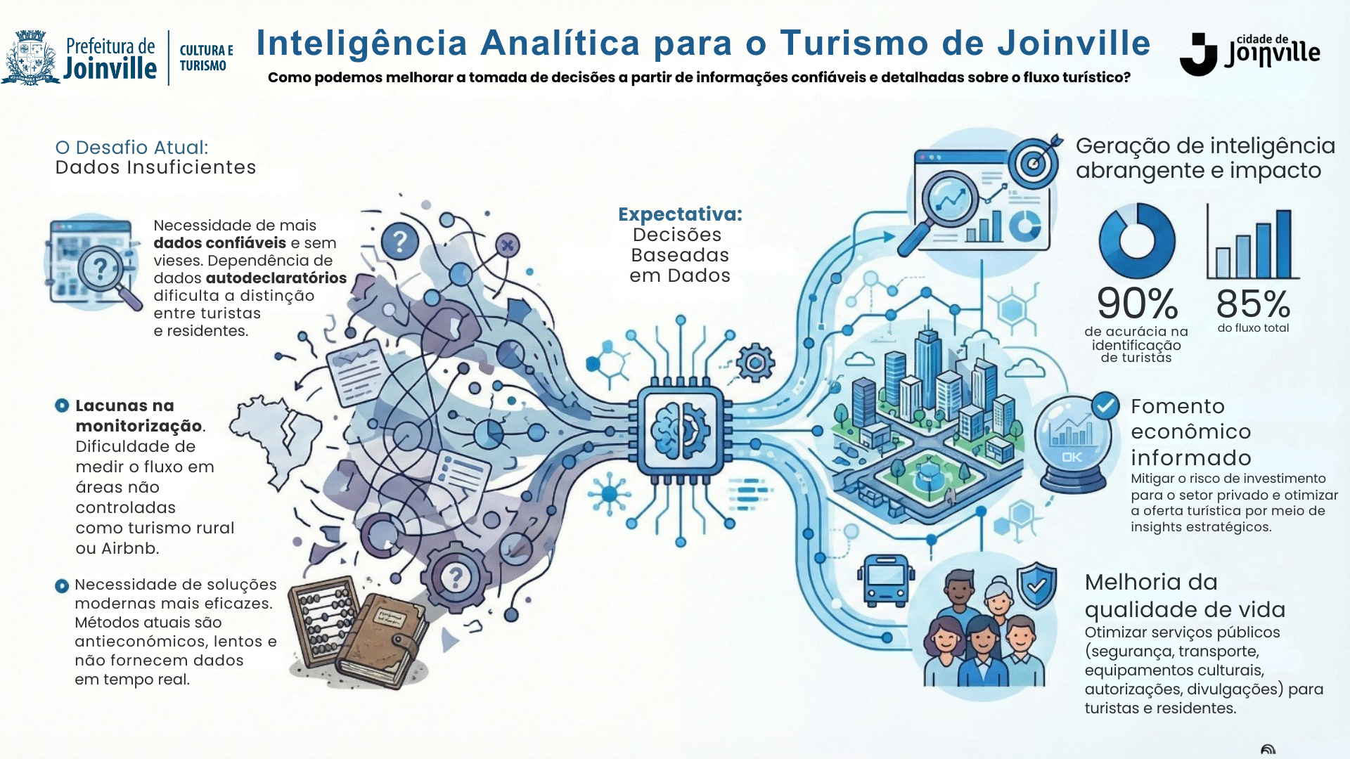 Descrição do problema: Solução analítica e inteligente de dados sobre o perfil e comportamento de turistas na cidade de Joinville para tomada de decisões estratégicas e otimização do valor público