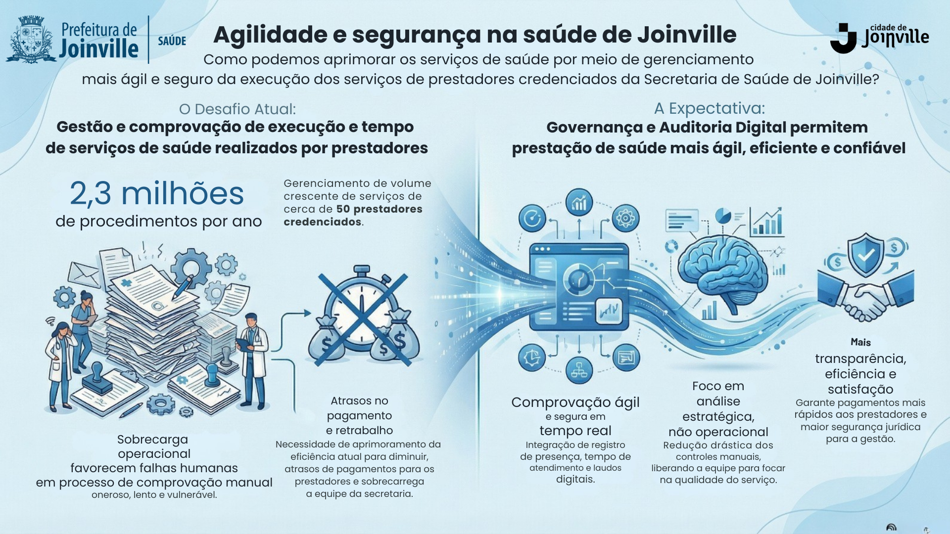 Como podemos aprimorar os serviços de saúde por meio de gerenciamento mais ágil e seguro da execução dos serviços de prestadores credenciados da Secretaria de Saúde de Joinville?