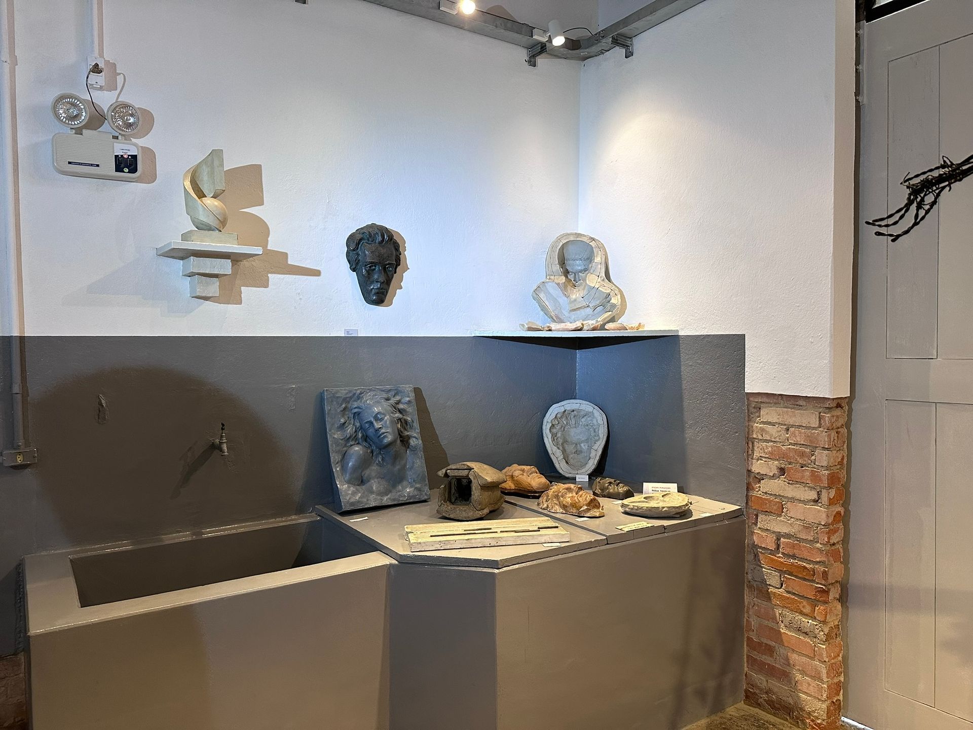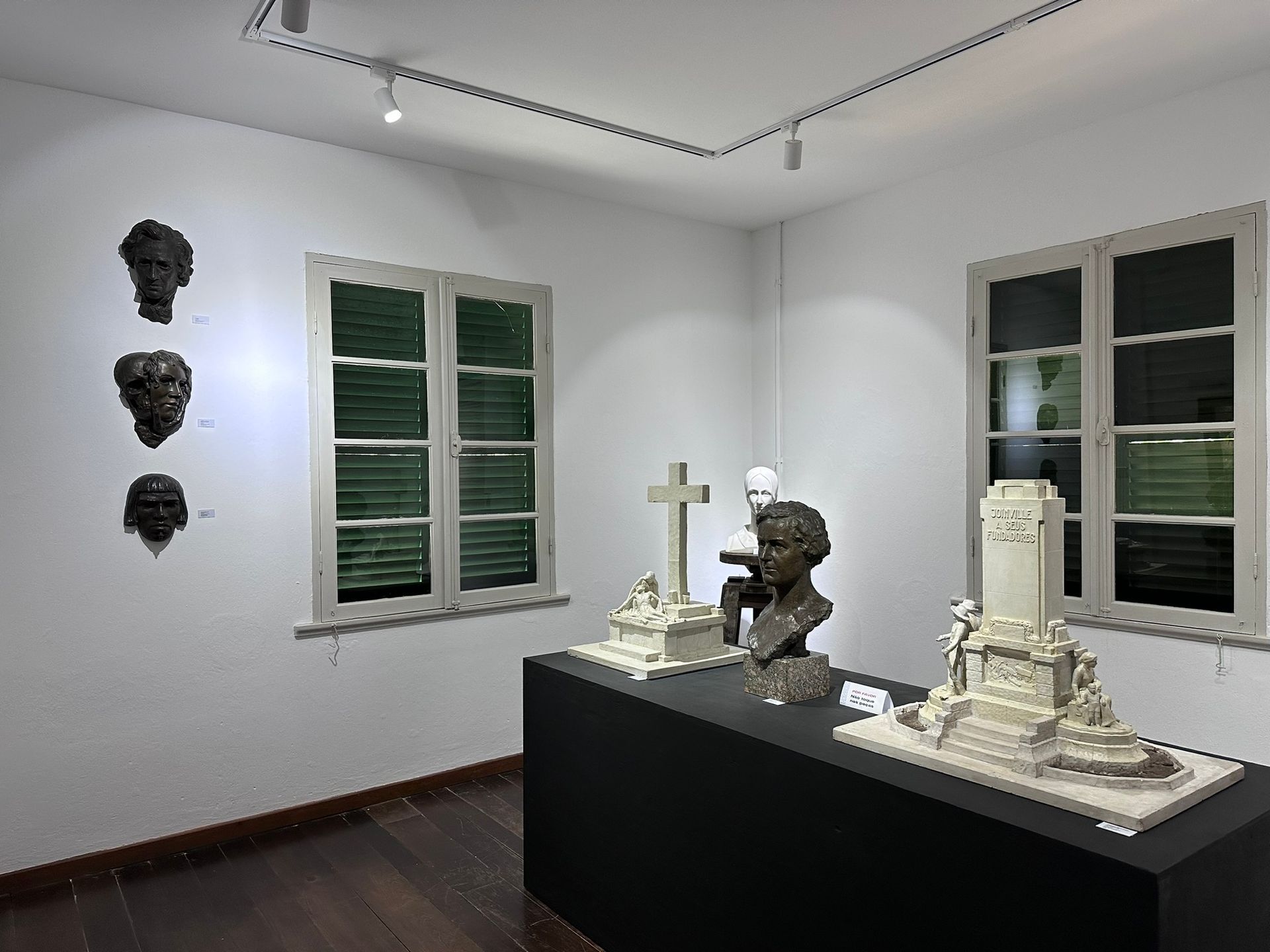 O primeiro espaço de visitação mostra uma linha do tempo da atuação do artista em Joinville e exibe algumas obras que podem ser tocadas.
