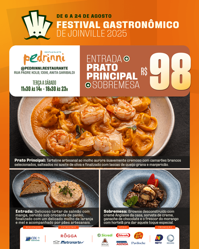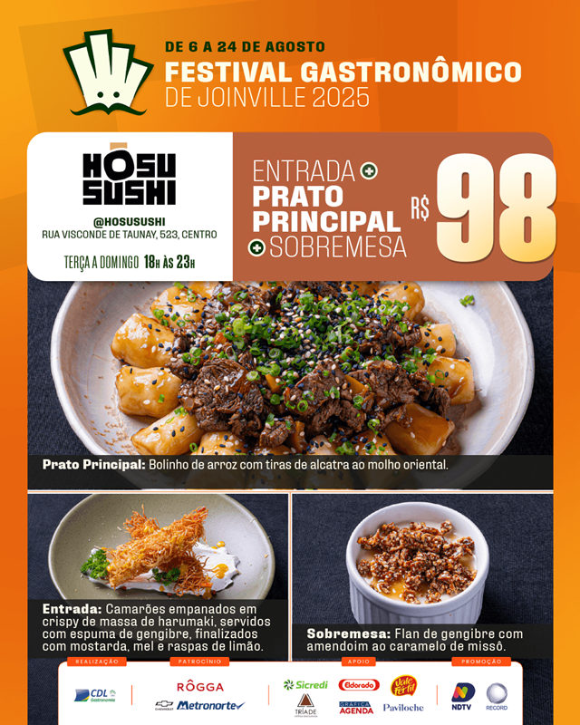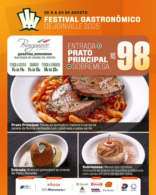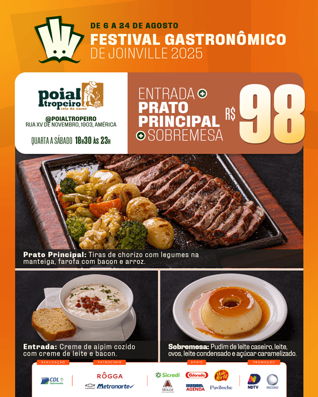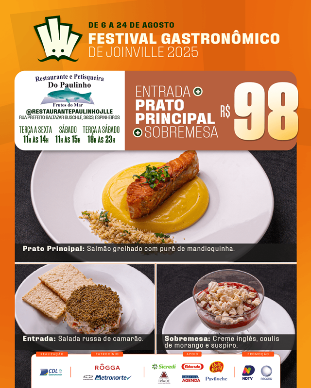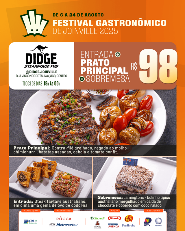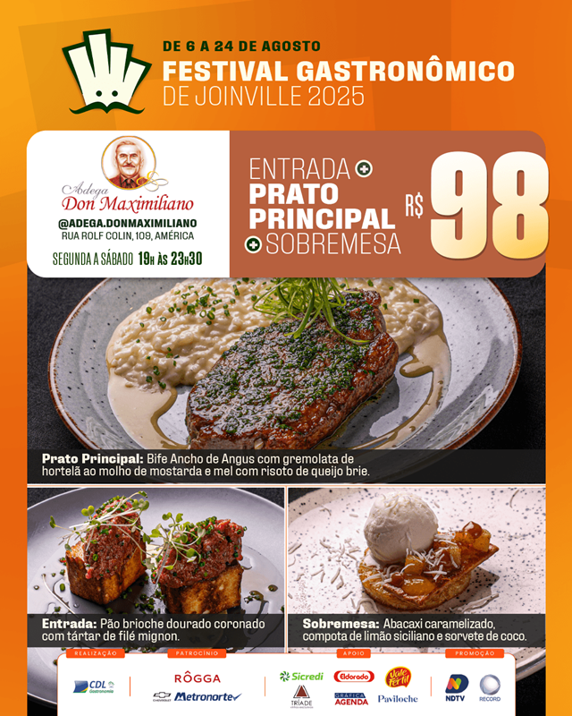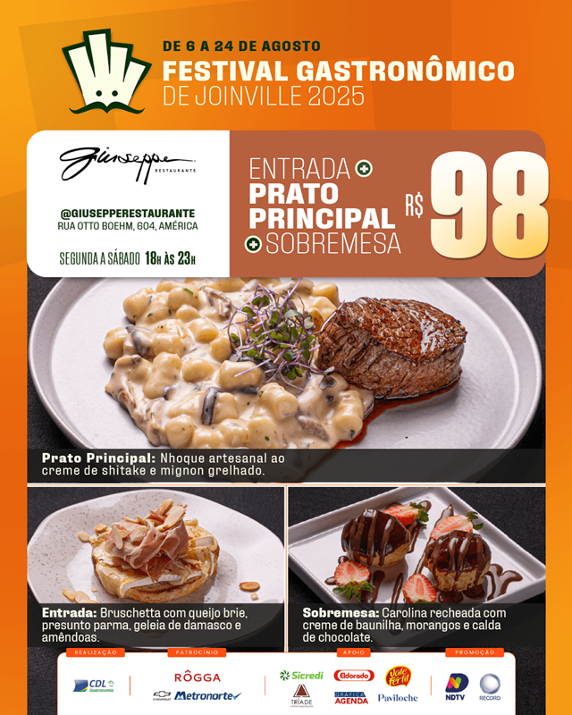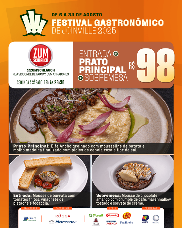 O Festival Gastronômico de Joinville, promovido pela Câmara Setorial de Gastronomia e Entretenimento da CDL Joinville, está encantando os paladares e fortalecendo nosso setor. Com uma proposta repleta de sabor, o evento acontece até 24 de agosto, reunindo 20 restaurantes da cidade em uma celebração da culinária local.