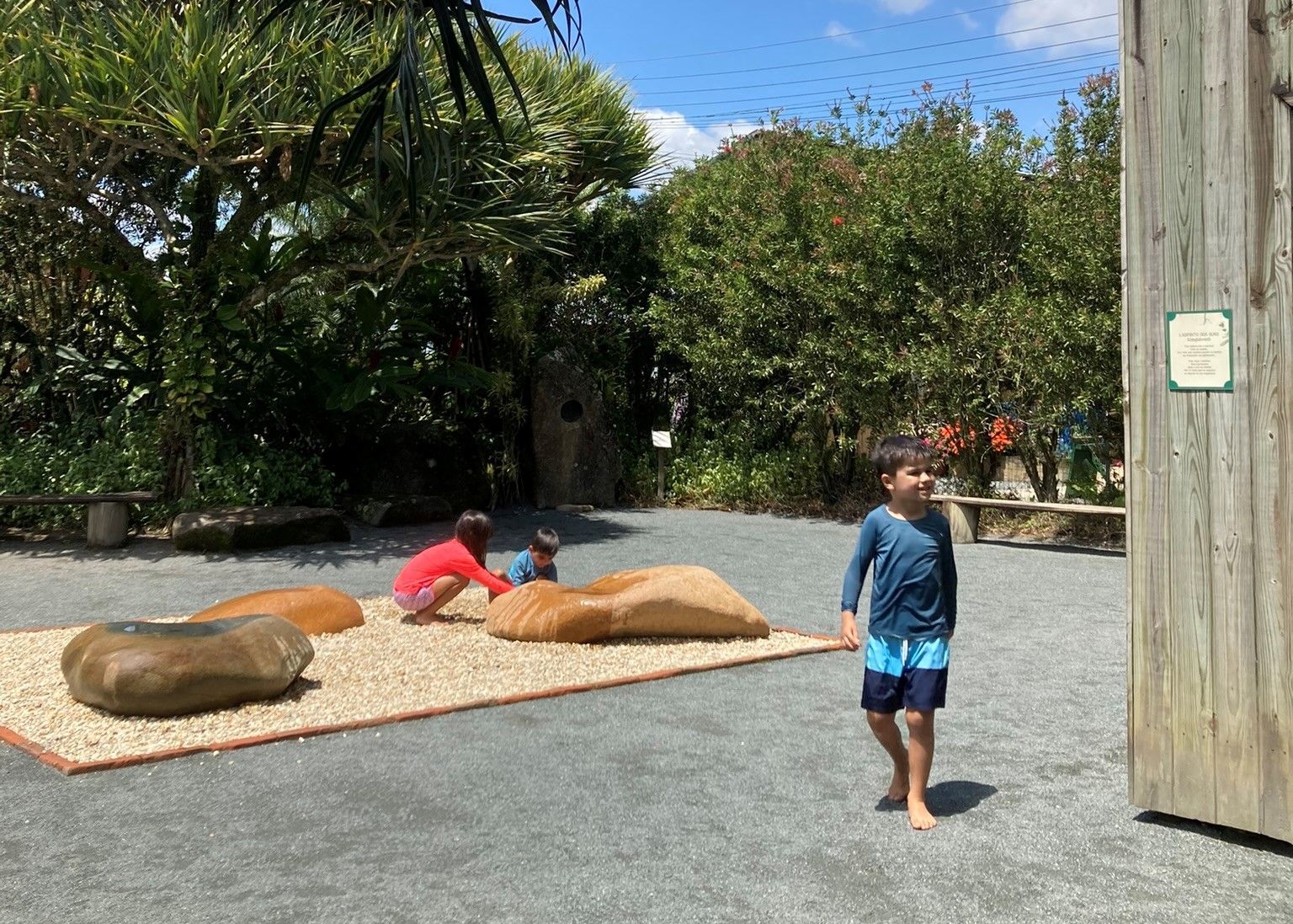 Jardim Interativo: Em dias de calor, é legal levar roupas adicionais para as crianças, já que provavelmente irão querer se refrescar na pedra furada. Além disso, encante-se com o labirinto dos sons, a misteriosa pedra sussurrante e a encantadora casinha de bonecas de dois andares que compõem os encantos deste jardim interativo.