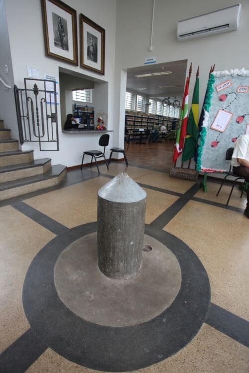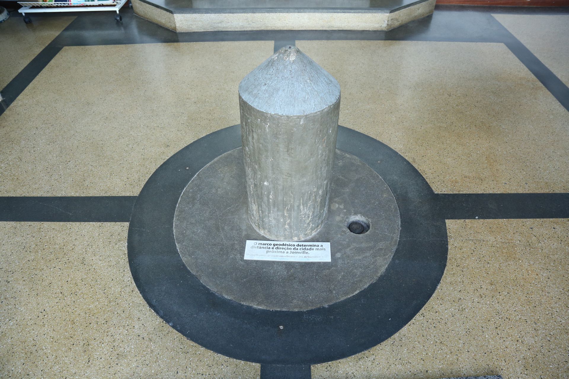 Dentro da biblioteca está o marco geodésico da cidade, conhecido como “marco zero”. Ele indica o ponto central de Joinville e tem grande importância histórica e geográfica.