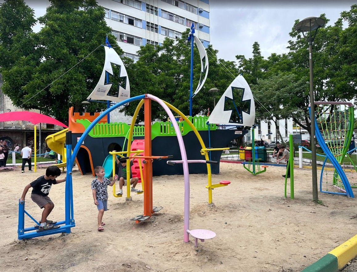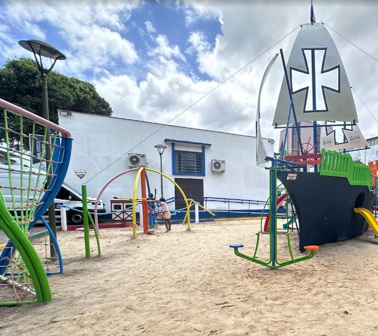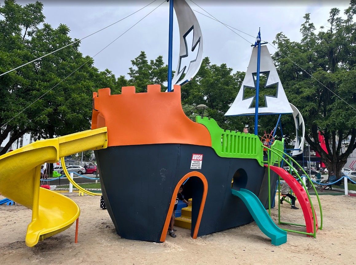 Parquinho temático da Barca Colon, que faz referência à embarcação que trouxe os primeiros imigrantes para a região.