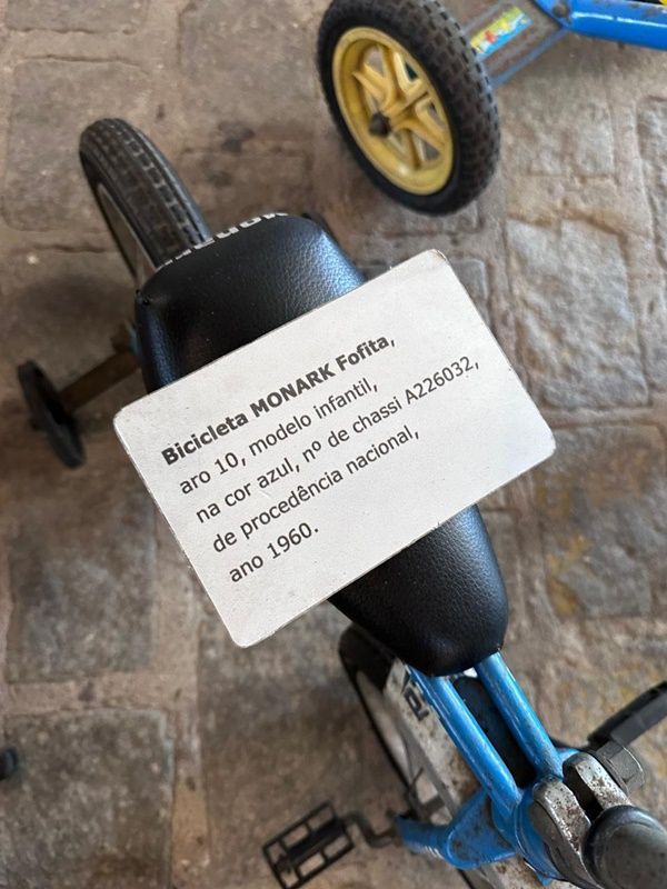 Peça para conhecer a bicicleta com aro de madeira e pergunte sobre as bicicletas com placas.