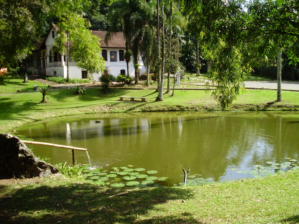 As lajotas da varanda atravessaram o oceano. Dizem os mais antigos que o mesmo ocorreu com boa parte dos tijolos, das aberturas e das madeiras. O estilo colonial foi importado das construções erguidas nos arredores de Hamburgo. Colunas trabalhadas em cerâmica se abrem em arcos na imponente varanda. O teto do porão é de tirar o fôlego, pois foi completamente projetado em abóbadas de tijolos que acompanham o arco da porta de entrada.