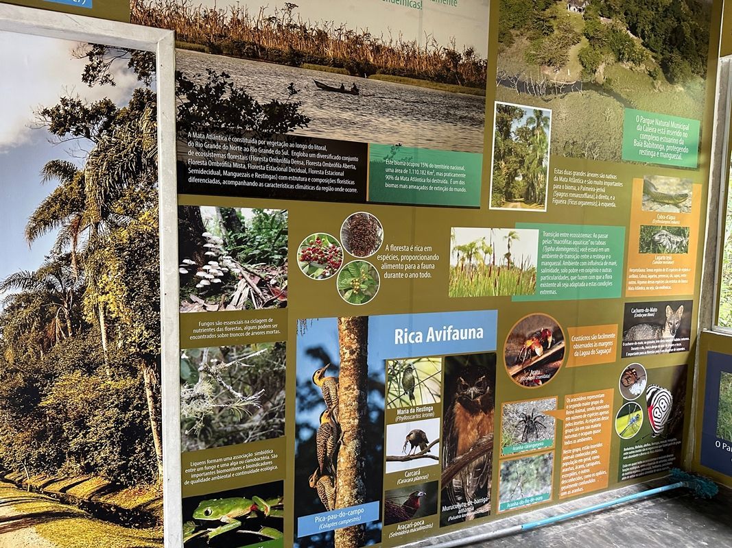 O ideal é antes de você conhecer o Parque Caieira, visitar o Museu do Sambaqui para entender o contexto geral. Mas se não conseguir, na entrada do parque tem um espaço expositivo, passe por ele antes de começar o passeio.