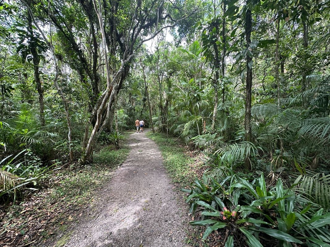 Do pórtico até a beira da Baía da Babitonga é aproximadamente 1km de caminhada. Há uma rua principal e paralela a ela estão as trilhas. Os caminhos são bons e acessíveis a cadeirantes e carrinhos de bebê.