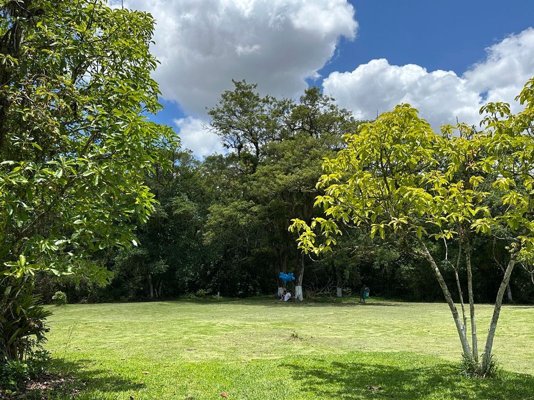 Logo na entrada você encontra um grande parquinho infantil com mesas para fazer piquenique, banheiros, guarita e uma área expositiva com conteúdos sobre o parque e sobre os animais da região.