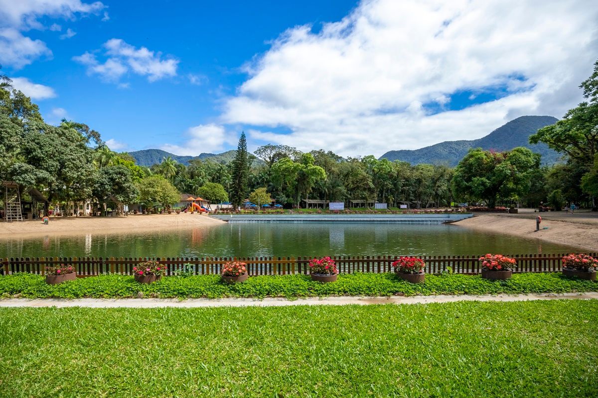 Além disso, o parque conta com várias outras atrações para famílias, como trilhas na mata, animais, área de piquenique, playground, passeio de caiaque e pedalinho, entre outras.