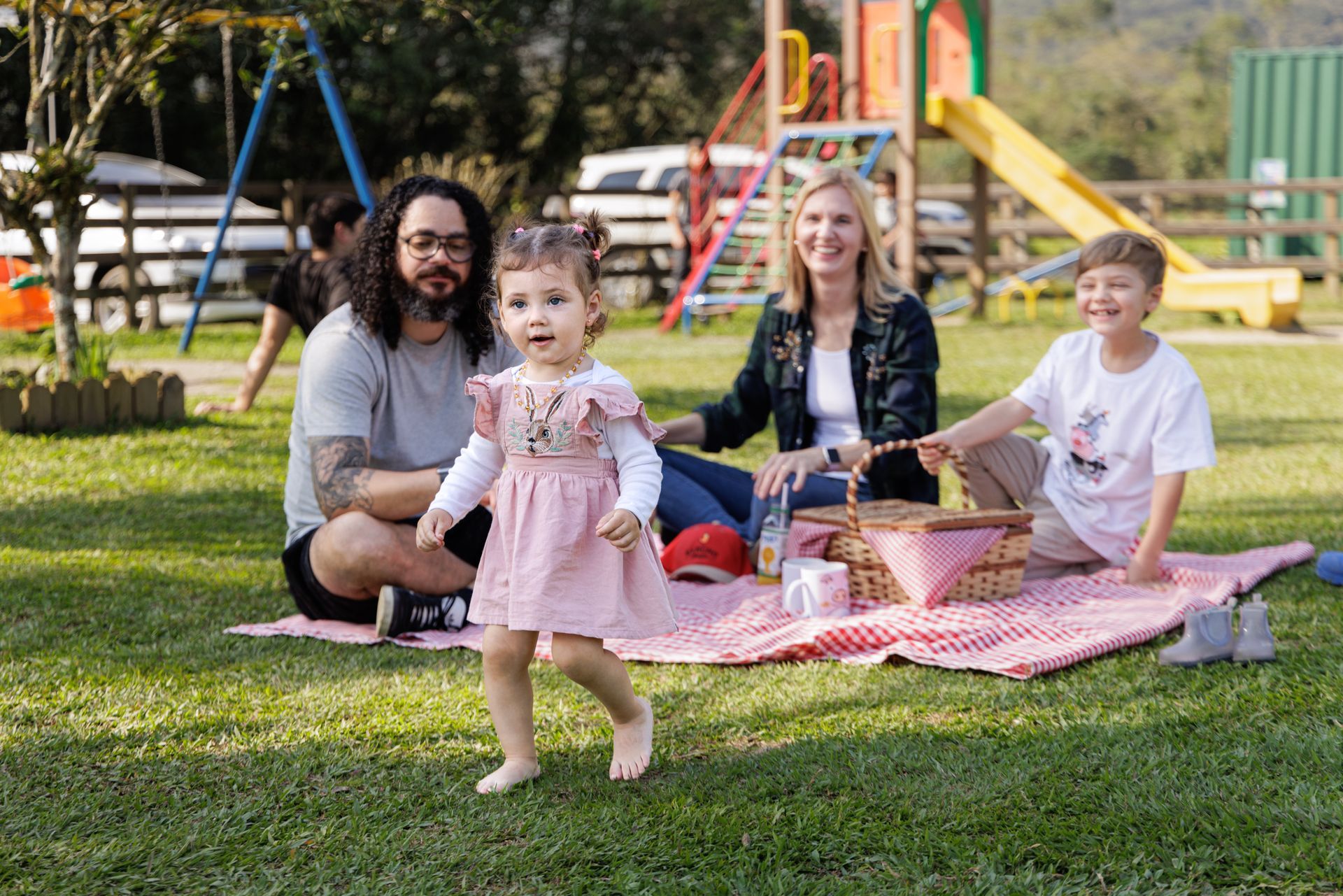 Os pequenos também podem brincar na tirolesa infantil, brincar no parquinho, na casa na árvore, no mini arvorismo e fazer piquenique em várias mesinhas espalhadas na propriedade.