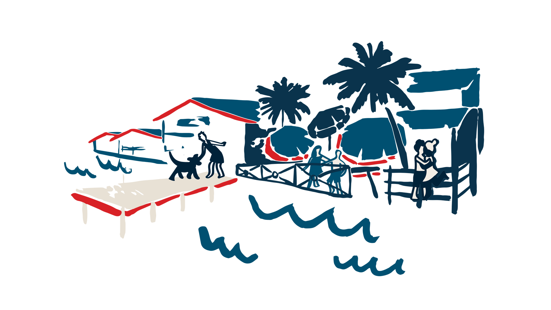 Quem chega é naturalmente convidado a sentar na cadeira, observar o vai e vem da maré e deixar os pensamentos seguirem o ritmo calmo dos botos ao amanhecer ou dos guarás colorindo o céu de vermelho ao entardecer. A paisagem é um encontro harmonioso entre o manguezal, o céu aberto e o horizonte desenhado pelas montanhas e pela baía — um cenário que acalma e encanta.